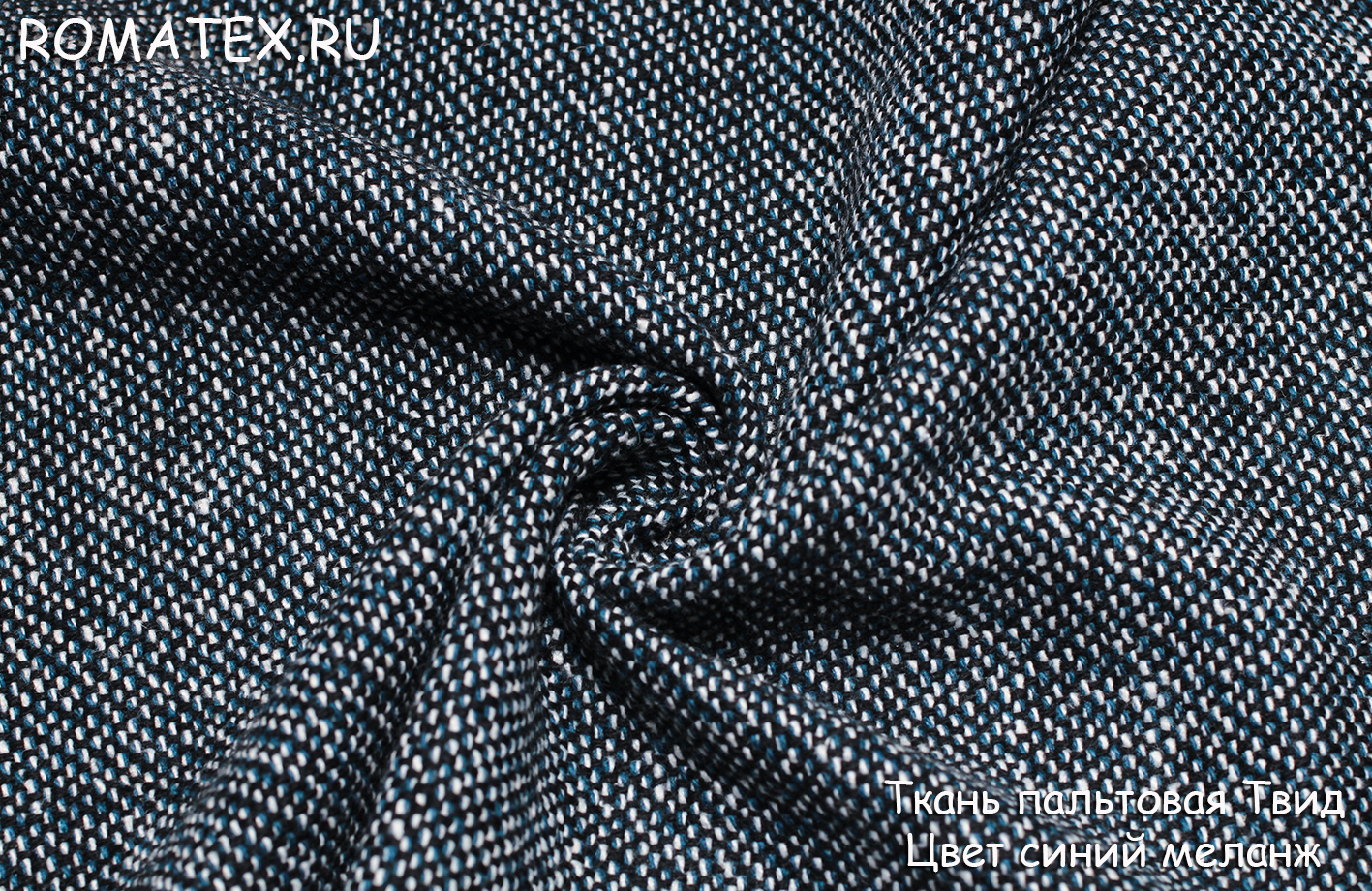 Ткань пальтовая твид цвет синий меланж
